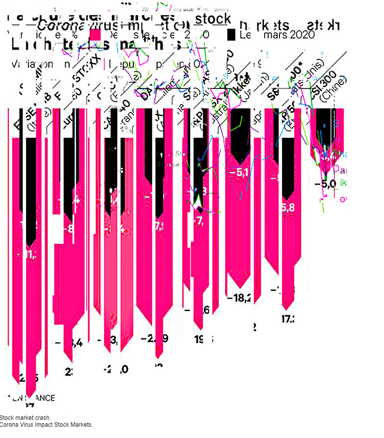 L’impact du coronavirus sur les marchés financiers apparaît en bandes lancéolées, évoquant pour moi des coulures (peinture, sang). Zone inquiétante – la symétrie des flèches ne laisse pas de doute sur leur dangerosité – où la figuration désarrime l’abstraction. Je pense à Cy Twombly :