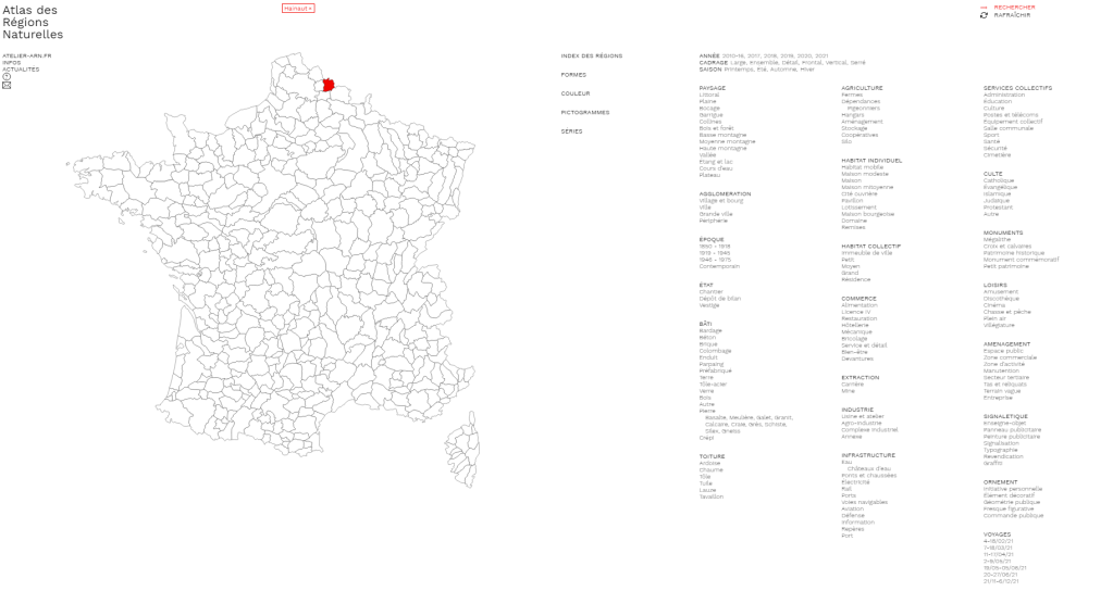 Je pense aussi à l’ARN (Atlas des Régions Naturelles de Eric Tabuchi et Nelly Monnier, https://www.archive-arn.fr/), travail titanesque, qui participe de la même démarche. Sur le site :
