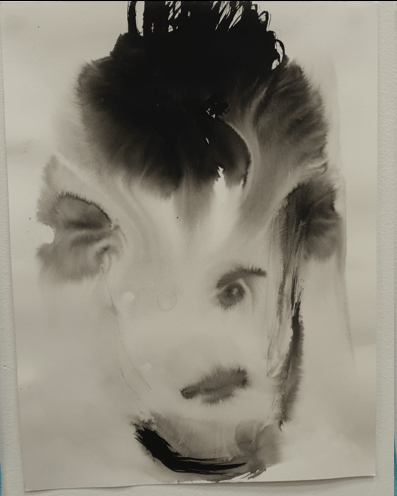 Imaginez un instant que cette intériorité (appelez-la âme, inconscient, ce qu’il vous plaira) soit pénétrable, que de simples pigments noirs puissent évoquer tout à la fois le vide et le plein, les contours changeants de ce que nous nommons « tête », que le geste créateur ait été assez juste pour rendre sensible ce que les mots peinent à dire. Voilà à quoi je pense à contempler ce lavis, jouant de la noire densité de l’encre pure et de sa dilution qui devient émanation, éther, et court aux bords blancs de la feuille.