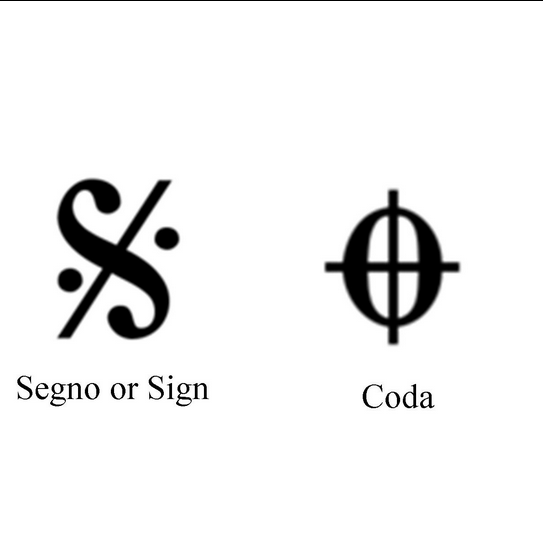 Du signe à la queue, pour indiquer à l’interprète de continuer à jouer jusqu’à rencontrer le signe de la coda.